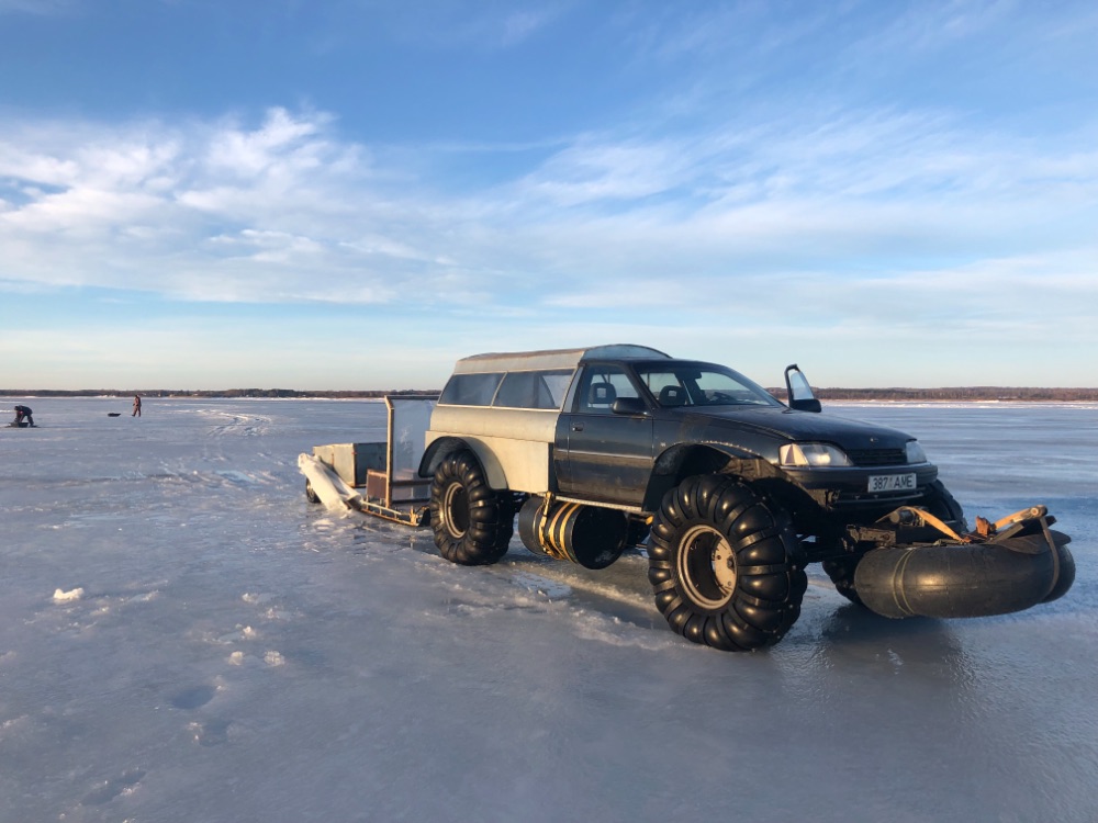 Ход действительно в субботу ,плывёшь по жиже , местами утопая в мокром снегу. Отьехав метров триста , кричат с санок , тонут , пришлось возвращатся в берег за другими .На пол пути снова останавливают , промокли до труселей в санках , Макс отказывается ехать дальше , буду тут типа сушится.