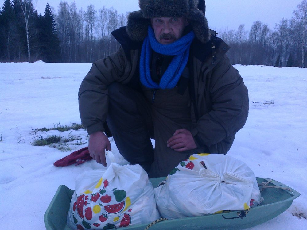 Ага два раза , возвращаюсь по следу , нет ни кого , да ,точки то там то тут , ломанулся в одну сторону не они , в другую не они , а в зади санки тащу , чую у снежика уже сил нету , они как ванна полные воды , пока выливаю воду , матерю потеряшек . Доехал до начала ловли ,