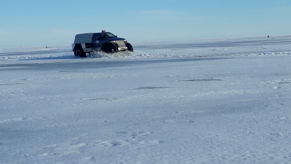 Ход хуже чем в пятницу - всё тает, на льду много воды - местами целые озёра :) Тем не менее техники в озеро ушло много, да и народа хватало (Район Роотсикюла).