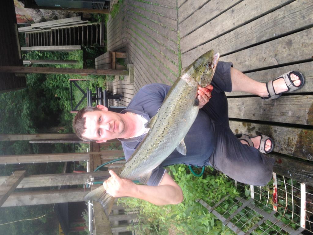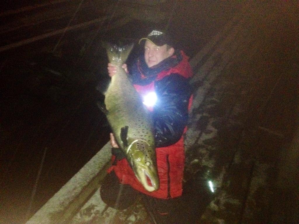 И где-то после 6 на недолго ключили рубильник с клевом и рыбка пошла. Сначала пару сундучков стандартных околокилушных Ну а чуть позже случилась именно та поклевка, за которой сюда рыбаки и ездят. Рыба взяла метрах в 30 от мостика. И борьба пошла
