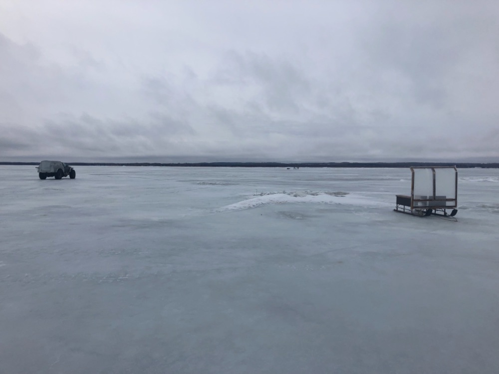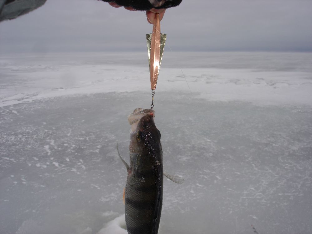 Были на озере 3 дня. Приехали в воскресенье, посидели, выспались и в понедельник с утра на лёд. Был сильный ветер и солнце, рыба ловилась плохо. За день взял лишь 20 голов средне-крупной плотвы. Окунь мелкий, весь отпускался.