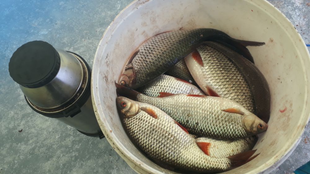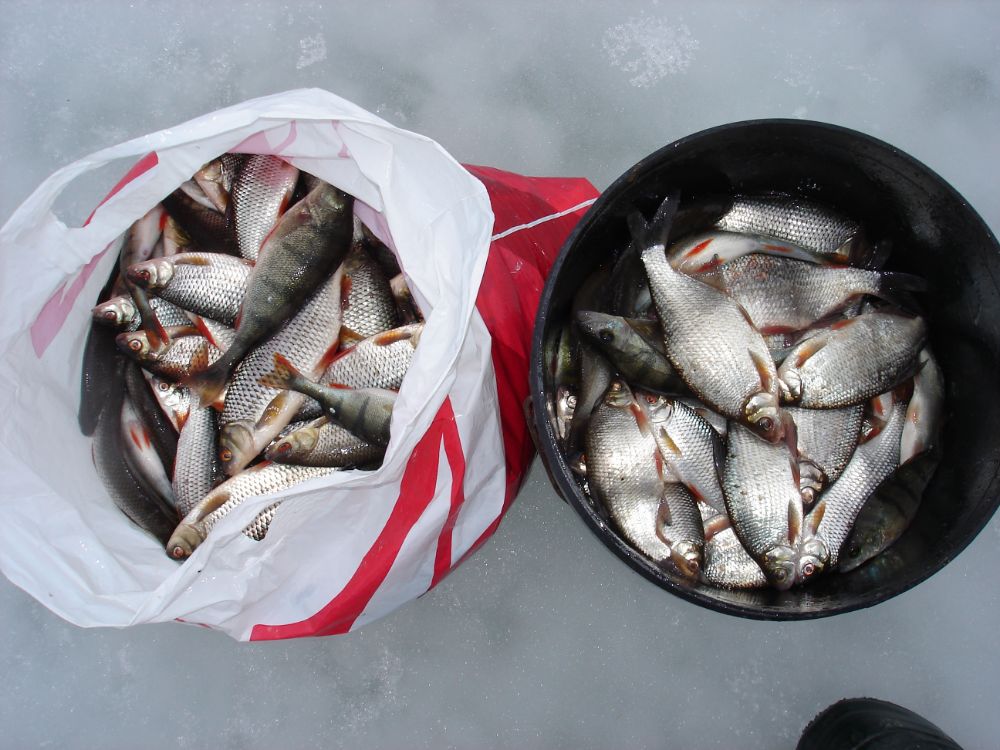 Подбираюсь к Паше и на приличной дистанции нахожу рыбу, товарища уже подозвали к себе. Практически за полтора часа беру 10 кг хорошей плотвы и тишина, в час по рыбке, поиск тоже не помог. Товарищ тоже взял 10 и Паша 21, общий вес 41 кило, хорошей отборной плотвы. Судя по народу и мешочкам у других весьма скудненько.