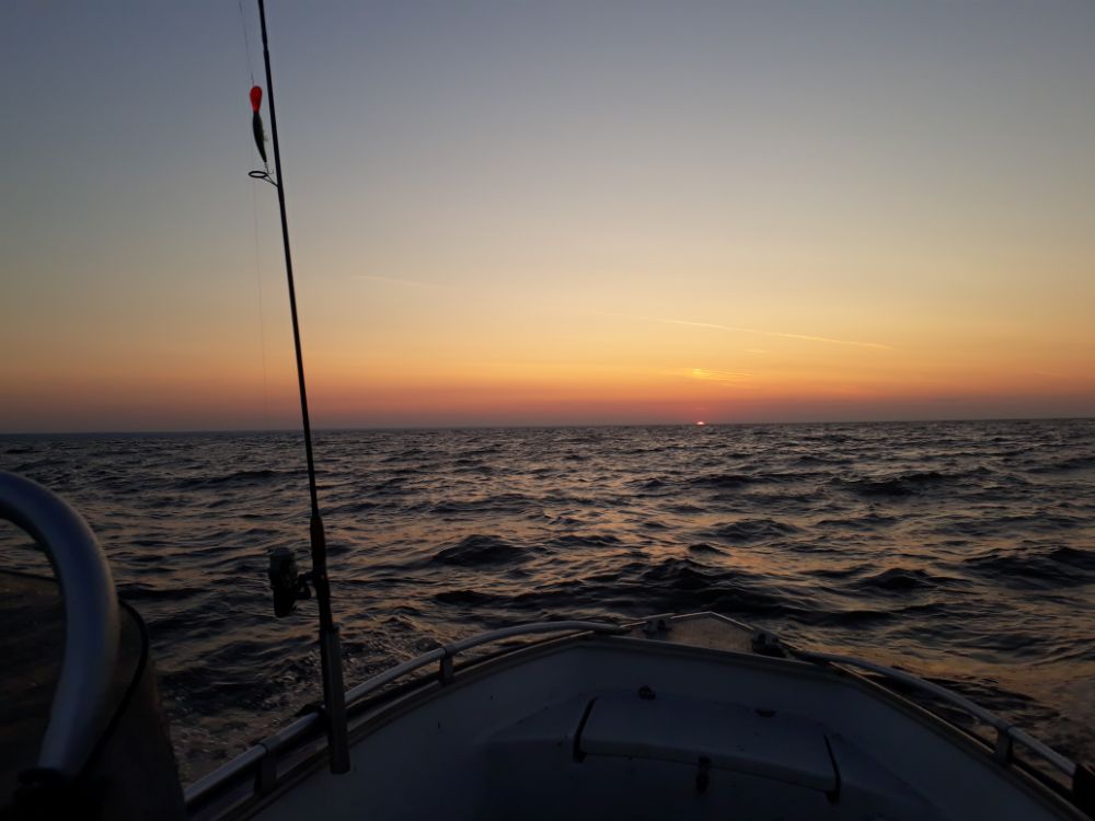 Вторая попытка в 6 утра , обстановка такая разительная , как будто я первый раз и не вставал , приснилось может , сейчас же солнышко , почти штиль , наката не слышно , короче через пол часа уже на месте .Так поздно в эт о время не выходил , было что в 7 утра уже возвращался с рыбой .