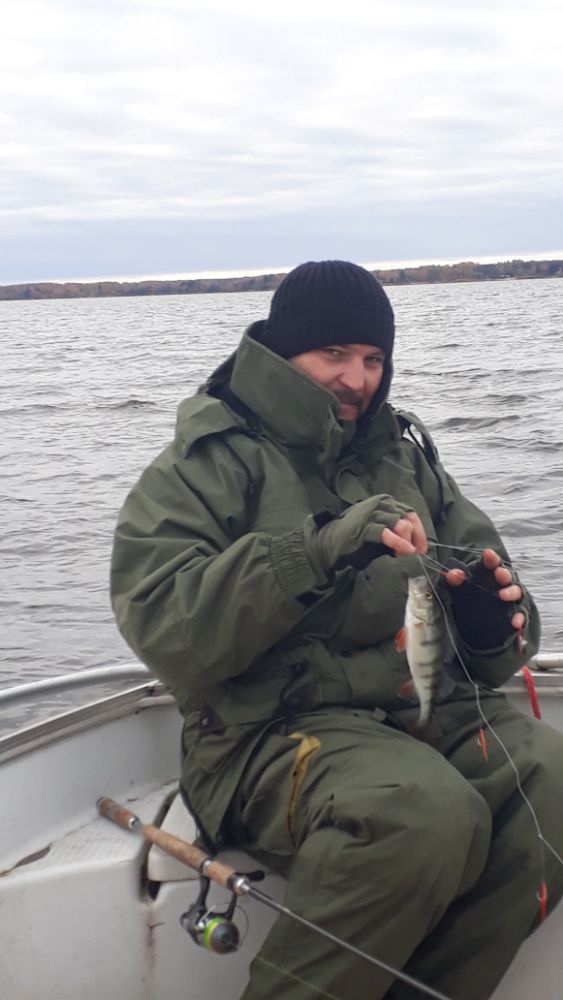 Сегодня в озере , сразу на своё место , клёв сразу , даже приманке не дают коснутся дна , ни одной проводку без поклёвки и единичные без рыбы , окунь просто под лодкой кидать даже далеко не надо , но не интересно , окунь конечно не крупный в основном, правда бывает и крупничёк проскакивает , но если кинешь в сторону от мелочи , так как она сразу садится , и не даёт крупняку первому схватить приманку , но в принципе окунь не конкретная мелочь как было в прошлом или позапрошлом году, ну и конечно такая рыбалка уж больно быстро надоедает , закинул вытащил , вообщем , норму на коптилку взял , кислородом подышал и до берегу , да и место Костроме сдал , что б не пустовало , хотя поблизости пару чаячных котлов было , сегодня даже и смысла не было ловить в них .