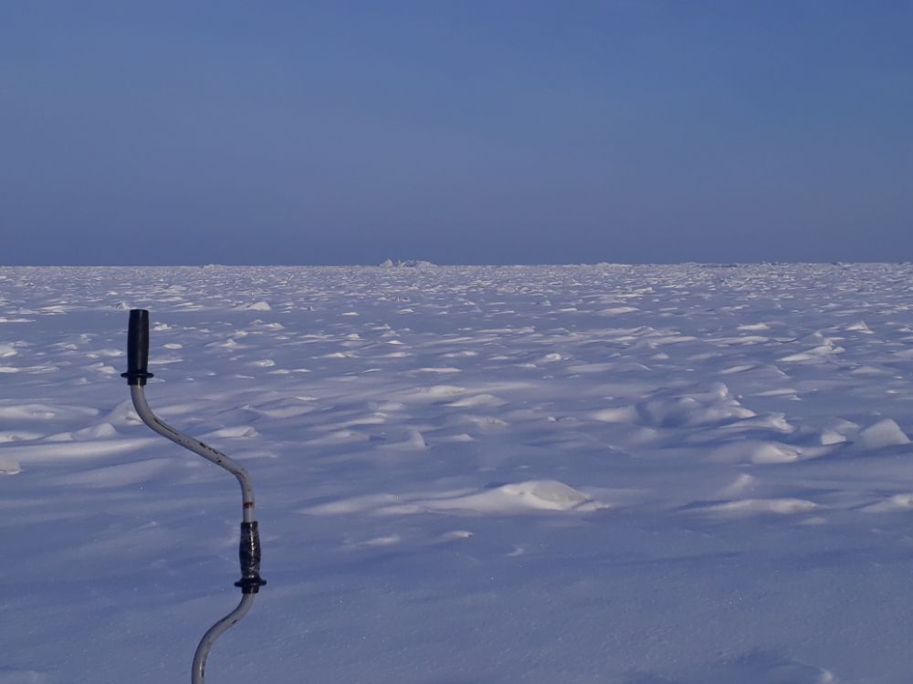 Пока хватает взгляда ,добрались по дороге где высадка такси , от туда в направленти горизонта , высадил ребят в первом месте, сам ушел в поиск, у них поклевывало на мотыля, я же до 12 не видел и поклевки , собрался быдо к ним , дай думаю еще просверлюсь, и тут попал.