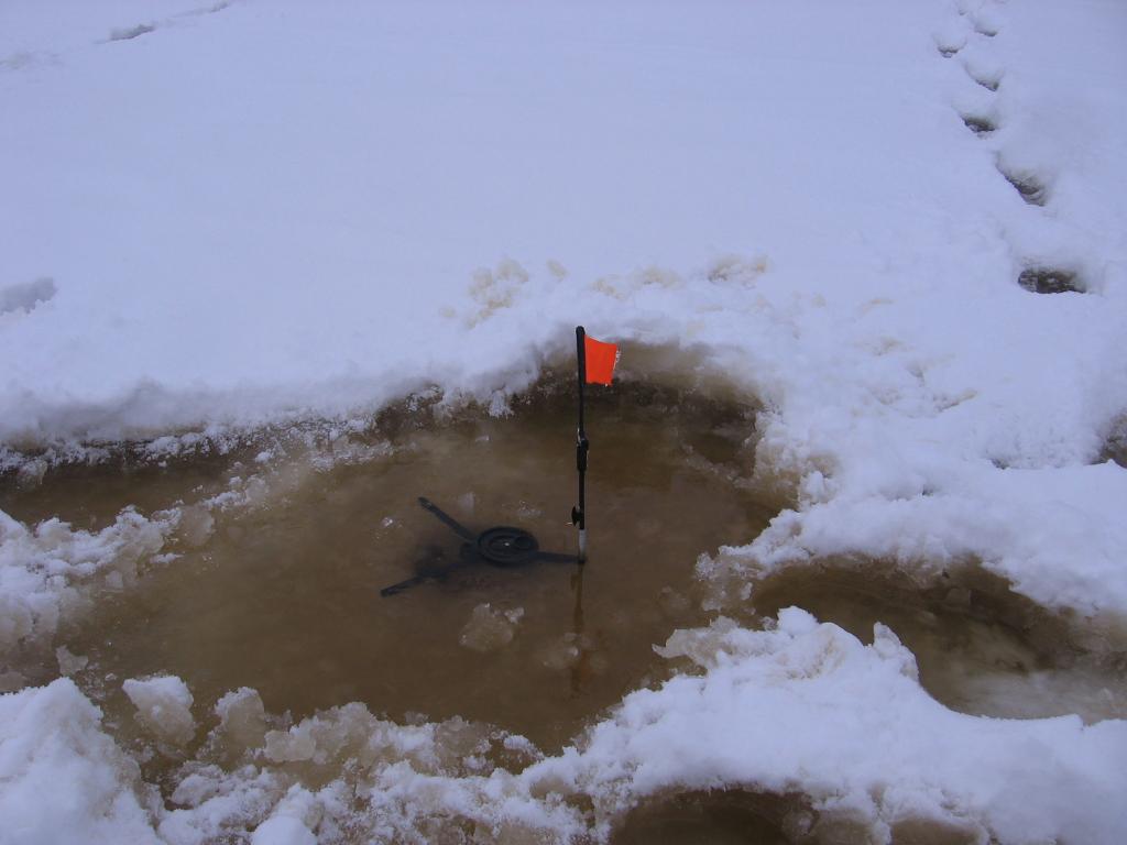 Ну,таки и снят зуд долгого отсутствия на рыбалке!В пятницу открыли сезон ловли со льда,посетив сей водоёмчик.(На кануне, в четверг скатались за живцом, на озеро Харку.В течении трёх часов набрали необходимое количество плотвичек и окушков.)По приезду на озерцо разделились.Один таки остался на канальчике,занимаясь пополнением живца,а двое пошли выставлять жерлички.Выставив на привычных местах,возвращаемся к товарищу.Тяпнув чайку за его первые поимки со льда в сезоне,занимаемся выловом прозрачной молоди окушка(годного правда для ловли в другое время года и на поплавок)Изредка правда проскакивает и то что нужно,ну и откровенный перебор,но не бонус.Начинают подъезжать и рыбаки,коих в этот день было около 15ти человек.В окуляры замечаю первый флажок,зажёгшийся и сигнализирующий о поклёвке.Подходим,подсечка,вываживание и вот щупачок-фломастер вызывает не с чем несравнимую радость,нашептав тому за родителей отправляем в родные пенаты