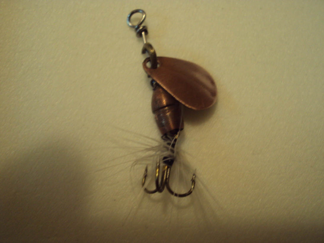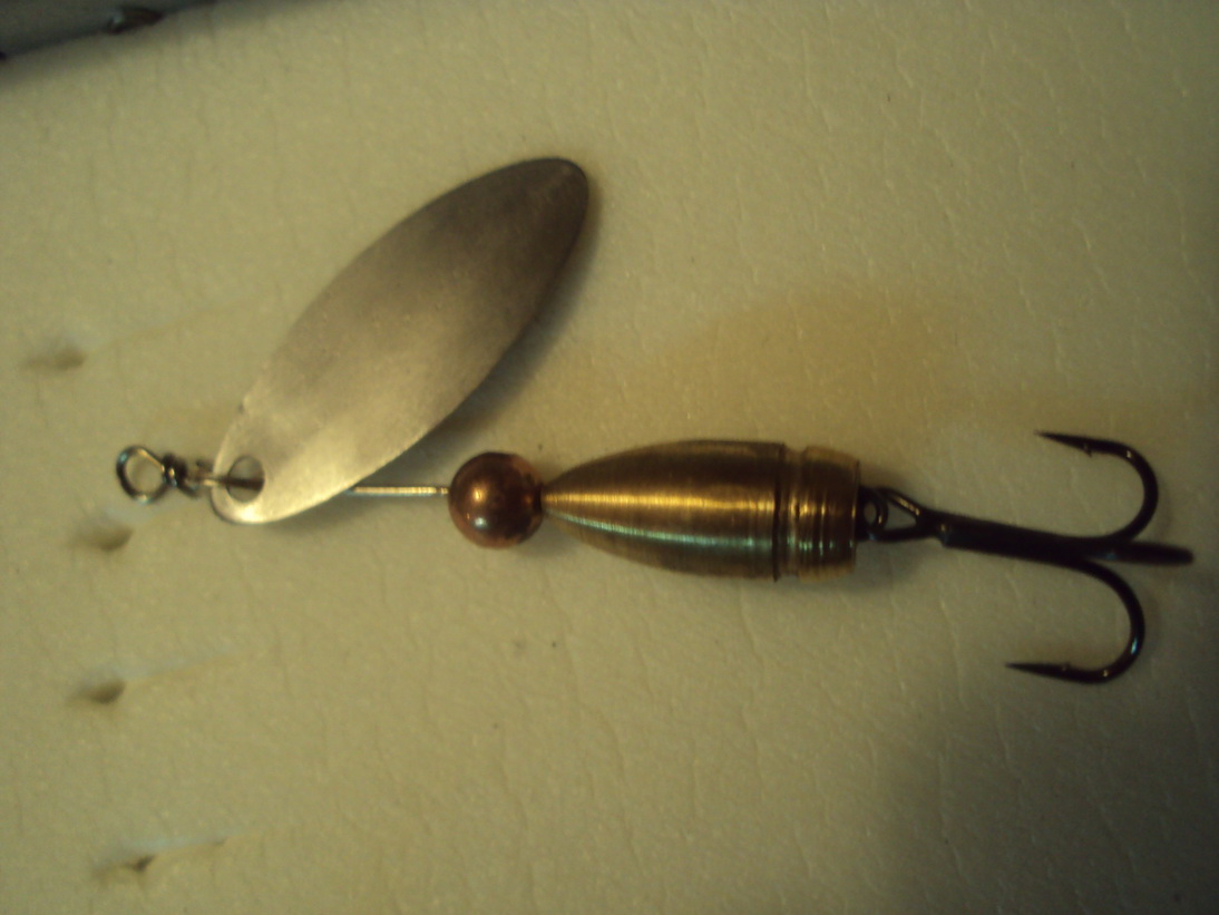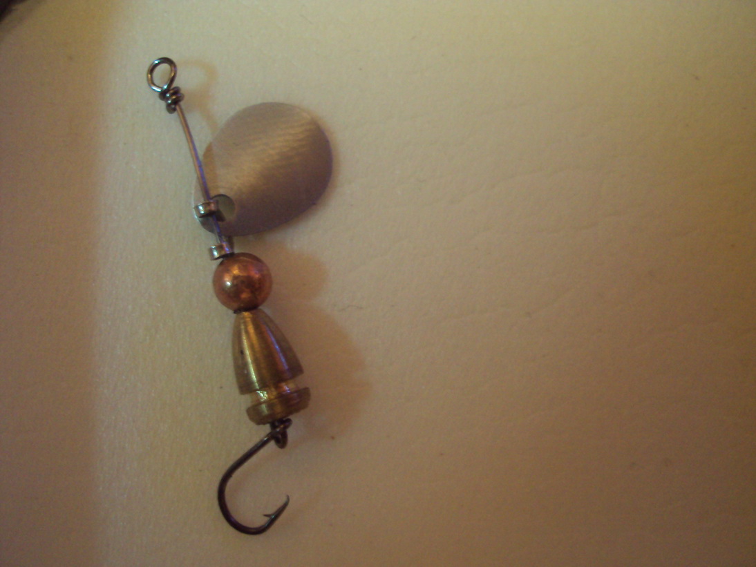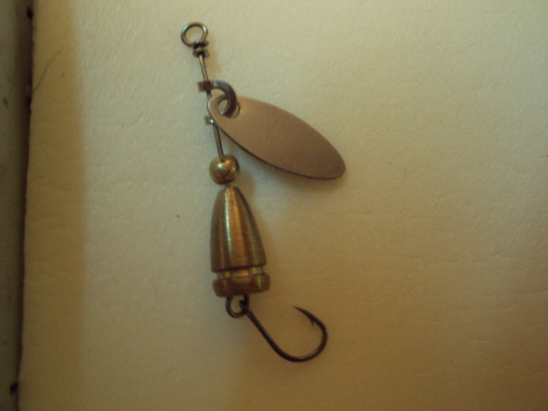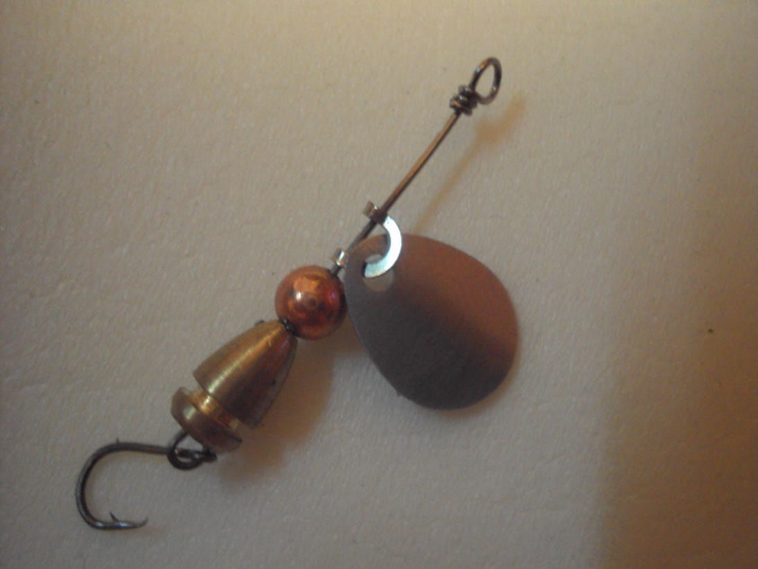 Лепестки медь ,латунь, нержавейка. толщина 0,4-0,5 мм. Те что побольше заводятся на ура на всех скоростях ловится окунек щучка красноперка, те что поменьше как раз тестирую, они в основном на мирную рыбку поэтому и одинарники. Все детали делаю сам за исключением хомутиков и крючков, но хомутики тоже делаю но проще купить, а так пока шлифую технологию...