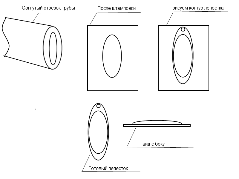 Я тоже когда то делал такие лепестки. Технология была очень проста. На наковальне молотком согнул