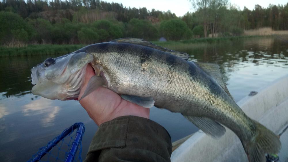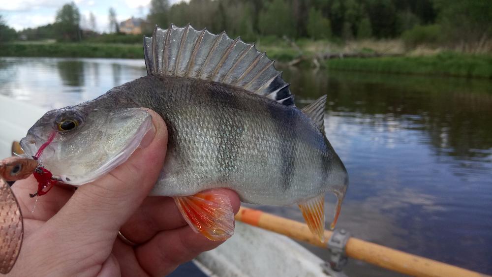 Покрутился... попереставлялся неск. раз. Ближе к восьми вечера - первый ударчик... вываживание килошки-щучки на 2-12 приятно... Потом окушок... ещё один... Всё поймал на вращалку любимую, Меппс Аглия Лонг 3.