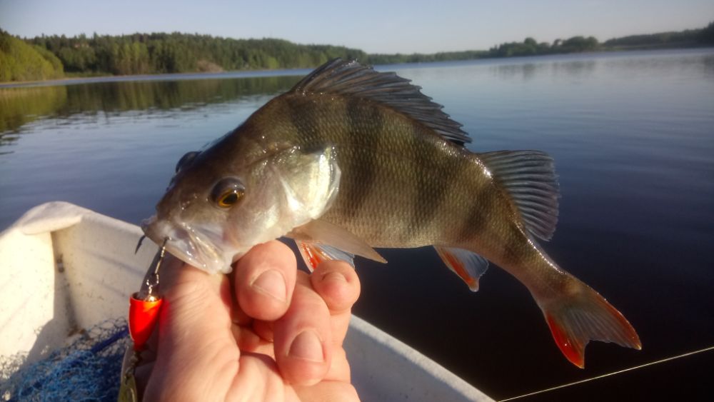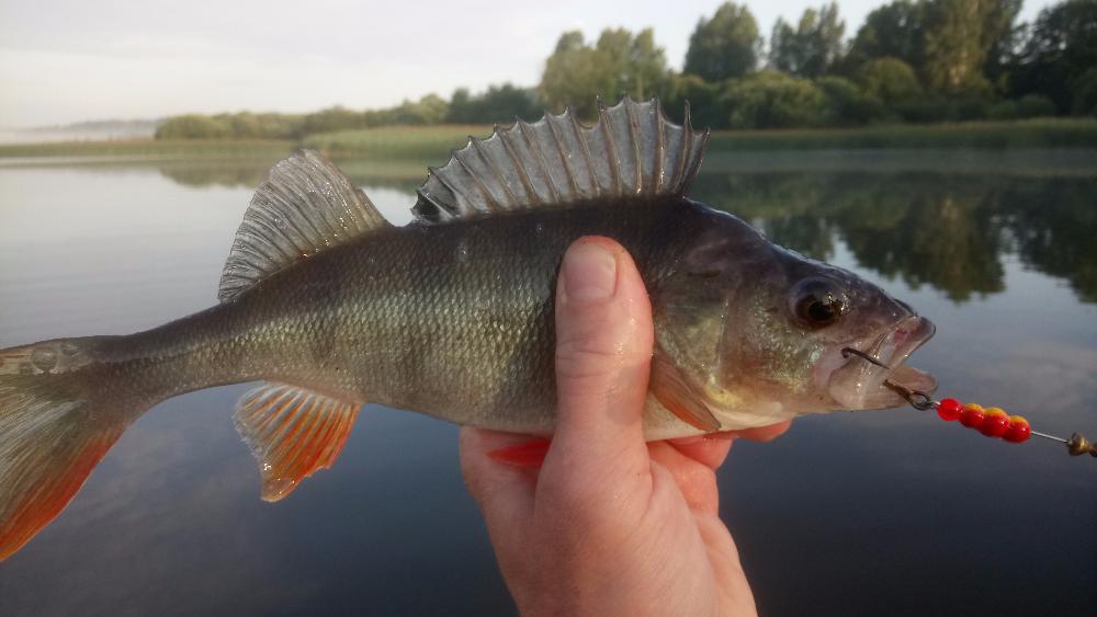 Пара окушков. Решил пораньше уйти в берег, чтобы собрать лагерь побыстрее и уехать.