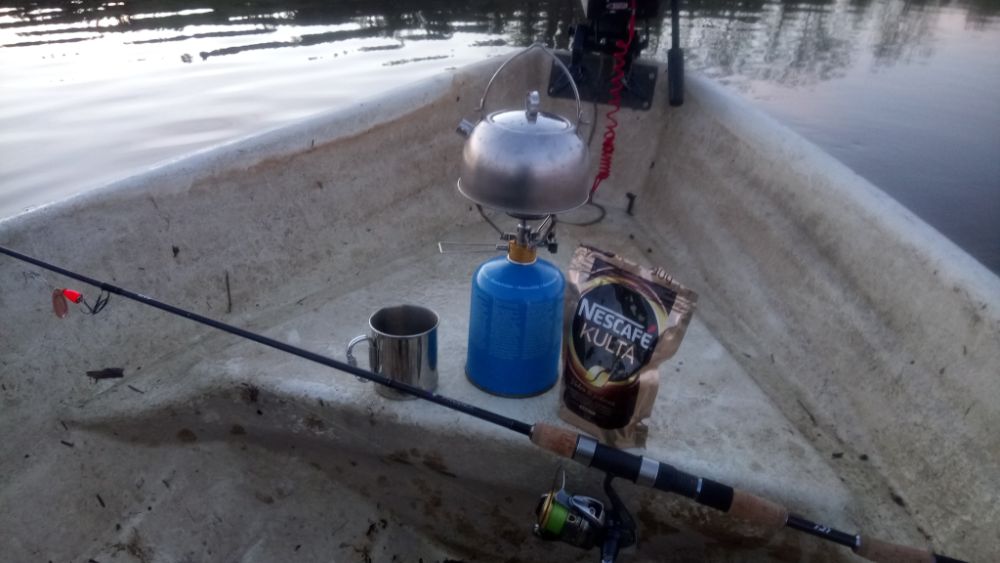 Будильник поставил на четыре, но проснулся на полчаса раньше сам. Умывшись, решил сразу стартануть на воду и кофе сварить в лодке, на берегу как-то не аллё из-за топкого берега. Ловил до 10 утра, сменил кучу приманок и после смены нескольких мест взял всего лишь одну щуку на 2.200. Ни жереха, ни судака и ни одного окуня не попалось, удивительно. Возможно стая жереха выдавила другую рыбу на моём участке, где ловлю. А я её проредил, так что нужно вскоре ещё съездить и проверить.