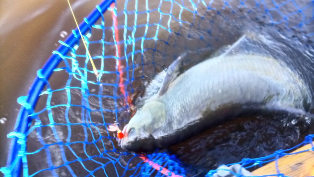На воде готовым к бою в начале восьмого вечера, погода отличная и лёгкий ветерок. После нескольких забросов на вертушку Блюфокс следует мощный удар - я думал что судак... Оказался жерех! За час с одного якоря поймал пять увесистых оковалков, от 2.900 и по нарастающей, до 3.600!
