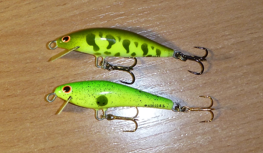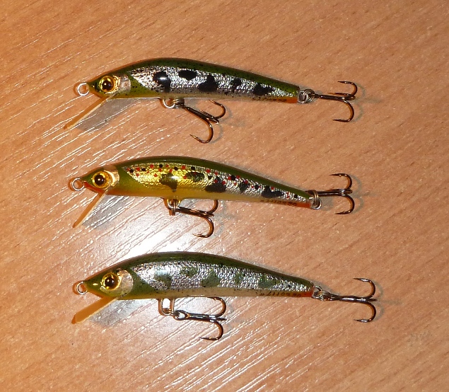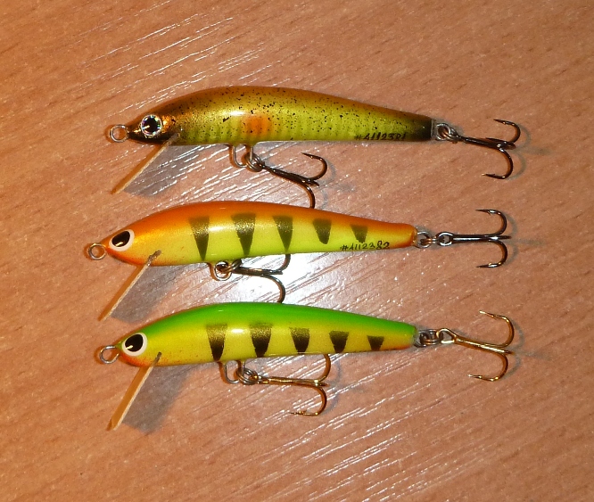 5 см. вобики на малые речки, за конопатой пойдут. а те, что по более - для щуки! Думаю запускать их в Нарвском водохранилище или на озёрах Карелии! Ну и по расцветкам - самые востребованные на мой взгляд!
