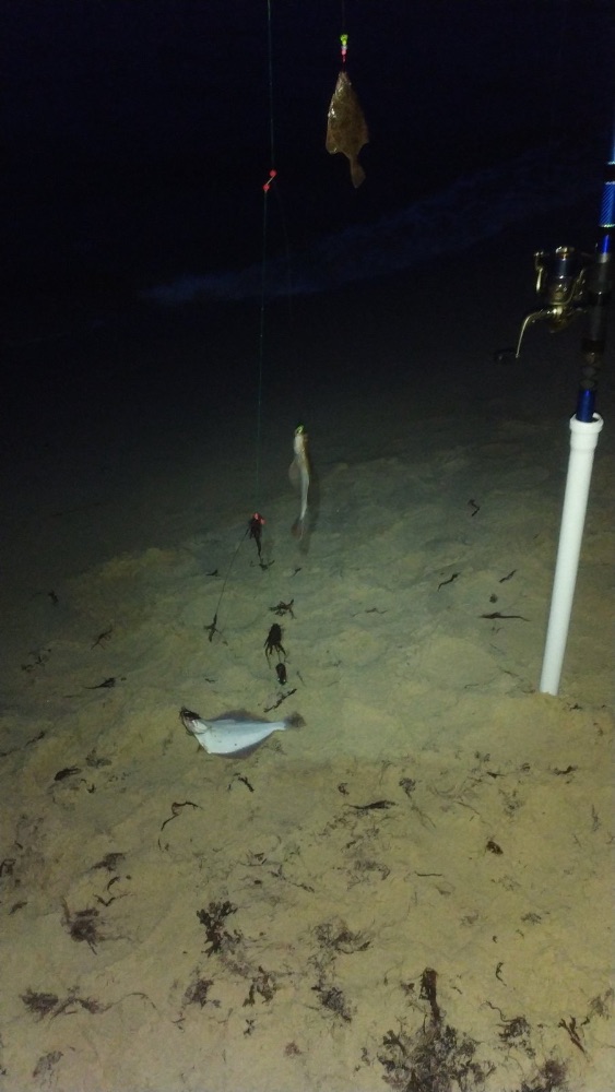 Приехали вчера вечером на место. Рыбаков практически нет. Садись где пожелаешь. Камбалюшка себя обозначила ещё за светло. Размер обычный, пляжный.
