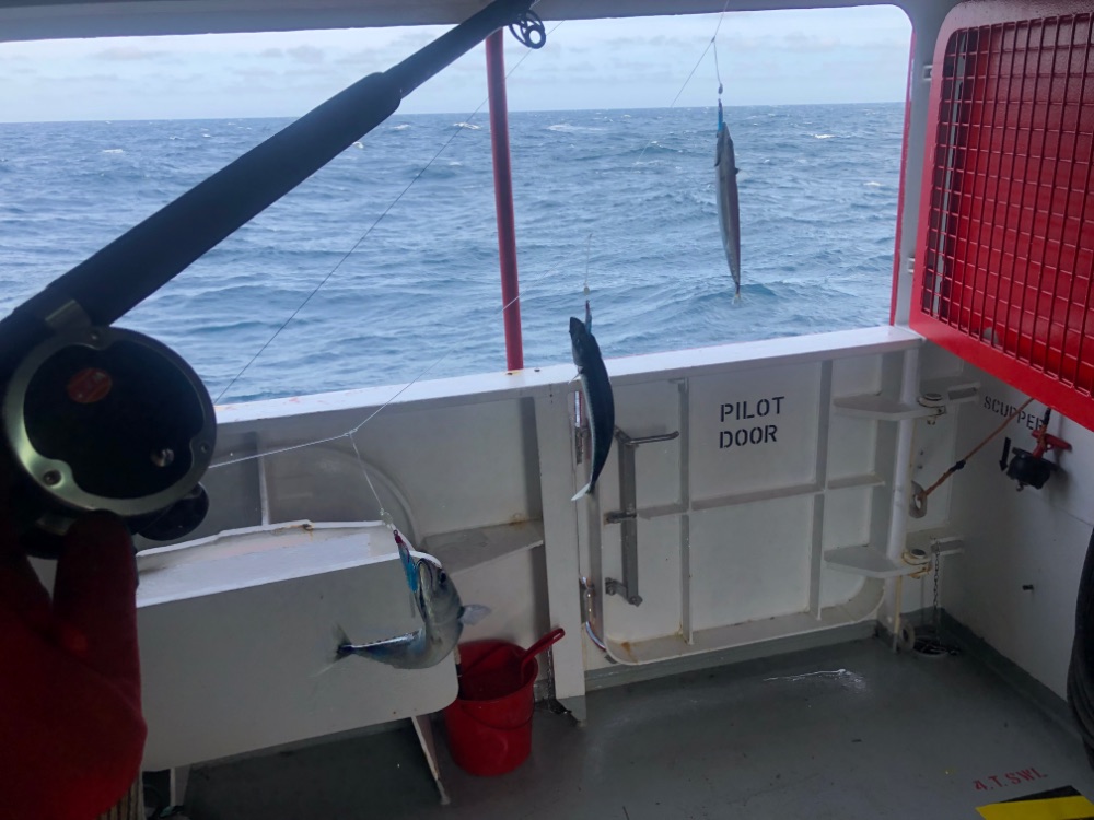 Юг норвегии, место как-раз посередине между норвегией и данией, глубина 60 метров. Исправно ловится мелкая скумбрия, крупняка пока найти не удалось. Отобрал чуть больше десятка для филипосов, они обожают свежую рыбу, остальных нещадно топил