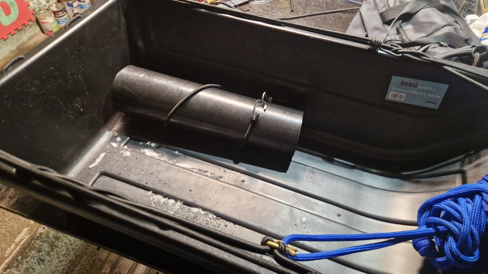Нашёл куда в походном положении крепить подложку под санки. Сижу и думаю, если крючки убрать и крепить спереди резинкой, сделать две крышки, то туды чё нить можно будет запихать.