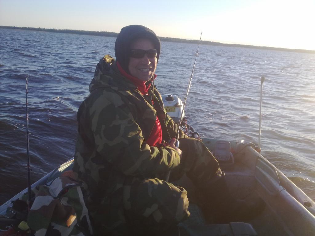 Выдалась сегодня возможность выбраться на озеро. С утра погодка прямо классическая карасевая-штиль,небольшой туман,легкая водяная пыль в воздухе. В июне-б в такую посидеть на утренней зорьке :roll: ,однако-ж мы приехали за осенними трофейными щуками! Таких желающих на озере оказалось ..в общем очень много :D В пределах видимости лодок 25 было весь день Вода в озере поднялась на метр с лишним.С первым пройденным километром как всегда ,первый обрыбился Олег,а у меня неразмерная :( . Вторую Олегову удачу я упустил на свободу.Пусть живет :lol: .Успел сфотографировать только эмоции моего капитана,после этого фотоапарат уже не рисковал доставать :lol: К обеду прояснилось,выглянуло солнышко,да такое,даже пожалел что очков с собой не было.Так и тукали туда-сюда. В итоге поймали по 2 околодвушки.Из четырех пойманных щук,три оцепились прямо в подсачеке.Брала еле-еле,или просто отгоняла назойливый воблер и накалывалась :unknown: .Зато мы и отдохнули,и удовольствие получили.А сейчас вот уже надо идти на работу.Удастся ли в этом сезоне выбраться еще? А хотелось-бы :roll: