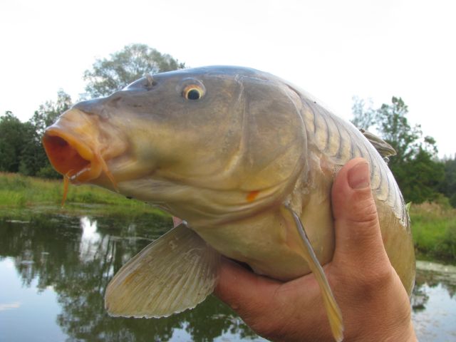Попался лысый карп, чешуи ваще нет, голый говорят называется