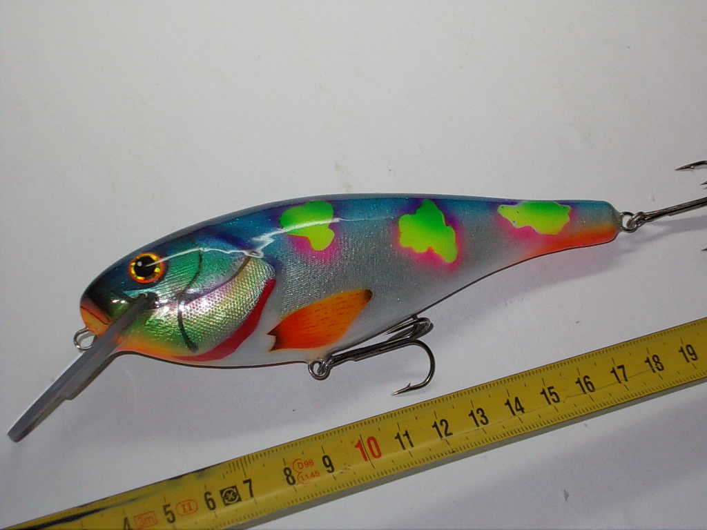 .Абаша ,15см. вес 56,20 гр. (крючки нужно ставить большие, будет тяжелее) плавающий. Парча, покрытие энвиротекс 2слоя и наверх три слоя ЛВ-1. Лопасть ставил из прозрачного ПВХ с усилением, чтоб не гнулась. Усиление приклеил супермоментом(ПВХ им клеится)