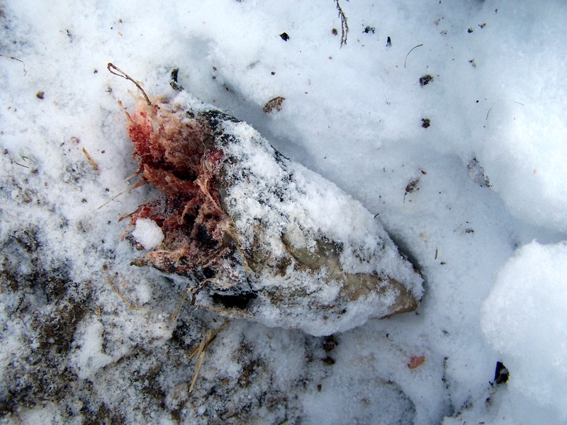 Я вчера видил эту рыбу, еще вполне целой, было разгрызано пузо. Айнар видил мои следы.