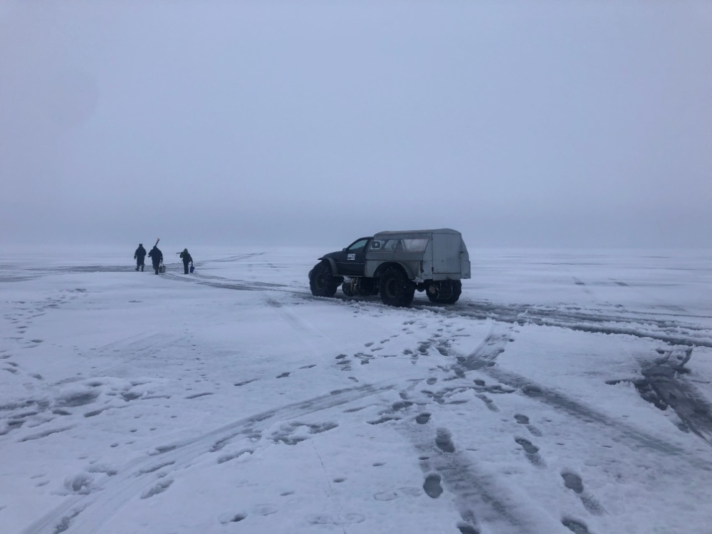 Воды местами довольно много, но она активно уходит в живые трещины и лунки. По погоде, три дня изрядный плюс дают днём + солнце... Потом мороз приличный. Будем посмотреть, но надеюсь что март ещё отъездим на лёд.