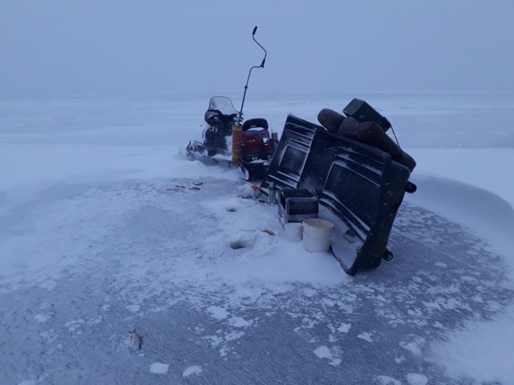 В 11 поднялся ветер. Я так и просидел весь день на одном месте, Саша тоже укрылся саночками и наблюдал, как я долго просижу на ветру. В 13 я пристегнул стул к санкам. В 14 позёмка начала доставать, мелкая снежная пыль крутилась у лица в завихрении и начала збивать глаза. В начале 16 часов я здался и мы поехали на базу.