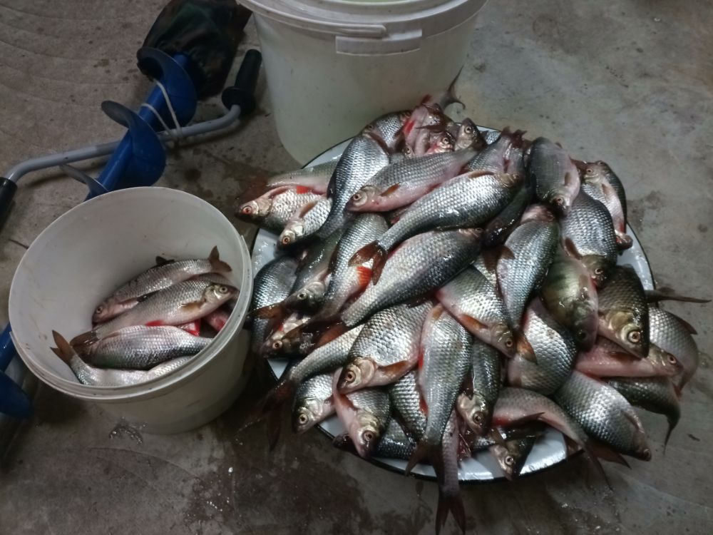 У нас с сыном улов был скромнее, около 6-7 кг. Вся рыба с одной лунки.