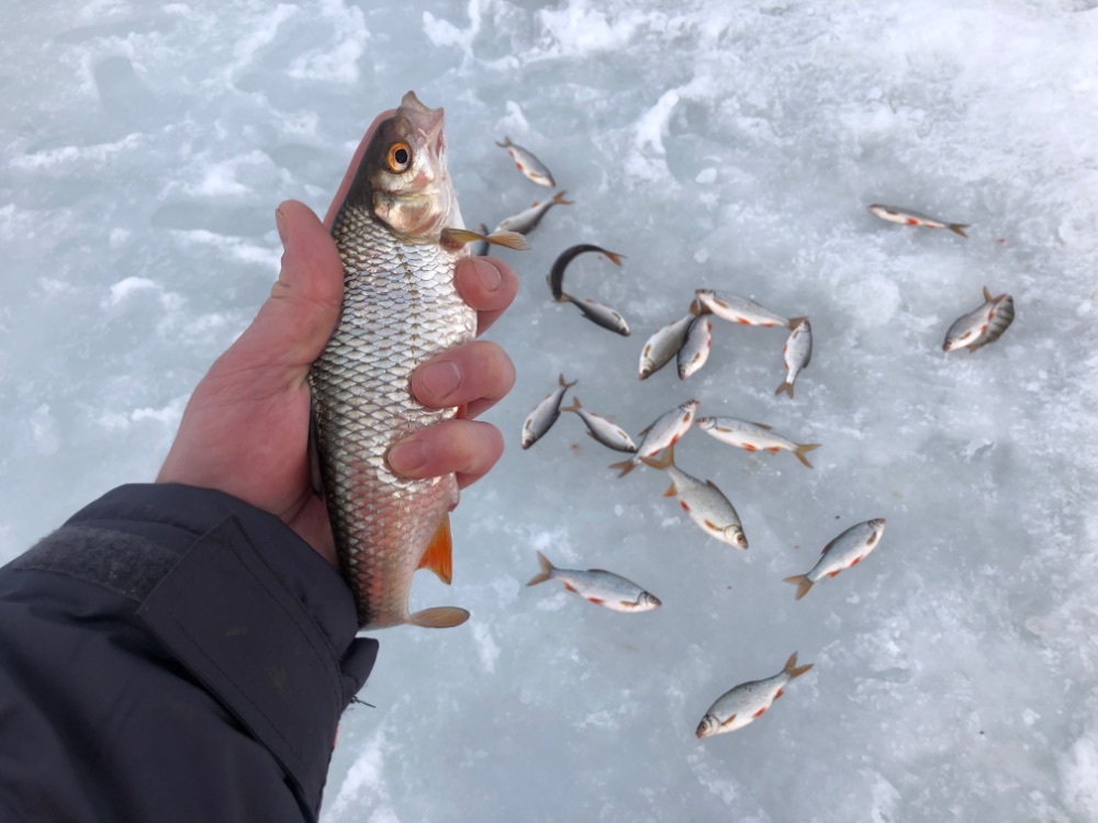 Я же продолжал бегать по трём самым перспективным лункам и получать кайф от скоростного подъёма рыбы. Клёв был бешеный! Дуплеты перестал считать после третьего подряд, их было действительно много! Снасти, подвергаясь нещадным нагрузкам, работали на износ, но тем не менее продолжали исправно поднимать одну рыбу за другой.
