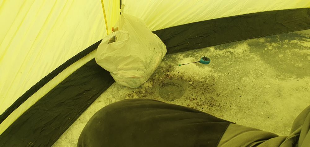 Oколо 10 я ставлю палатку на точку латышей, откуда были подняты мега-плотвички