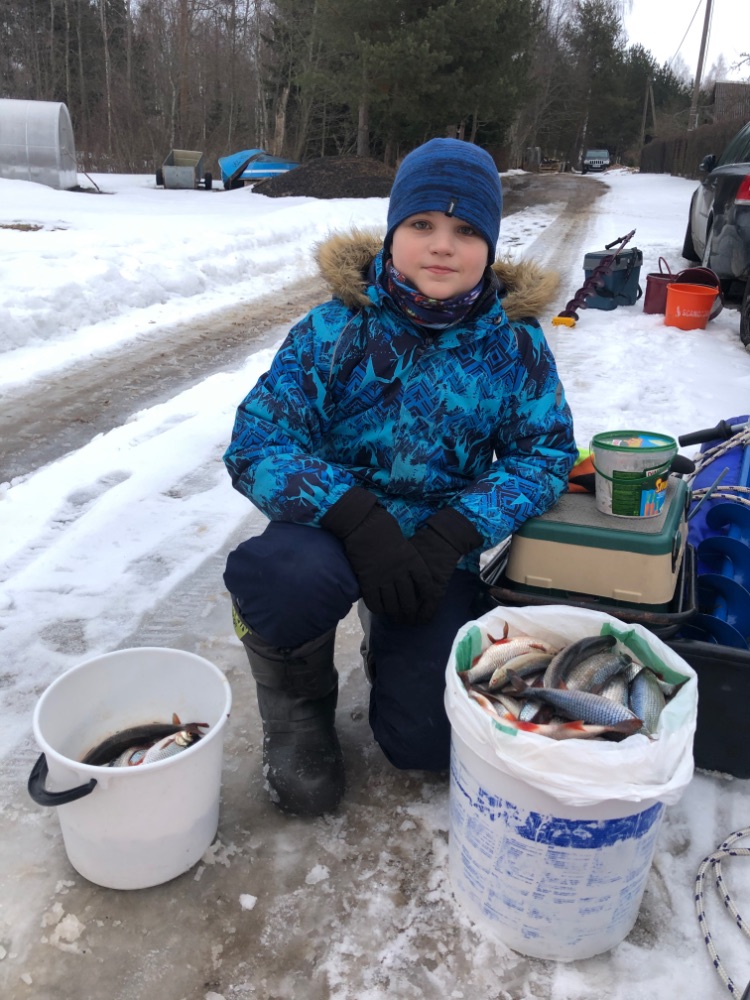 Погода на много лучше, ветер сменился на западный, довольно сильный, палатка на растяжках. Сели на лунки, но клёва нет. Решаю проверить свои вчерашние лунки и уже на первой получаю уверенную поклёвку - первая плотвичка на льду. И вот тут началось то, что называется Чудской лифтинг, раздача, порево, бешенный клёв как из пулемёта - в общем всё то, ради чего мы все едем на Чудо! Поклёвки следовали одна за другой, размер рыбы радовал. Лишь когда поклёвку приходилось ждать более 6 секунд, я переходил на следующую лунку и всё начиналось с новой силой. Тем временем у сына дела тоже шли в гору, из ведра виднелись приличные тушки, ловлю он вёл на мормышку. Но после того как я наглядно продемонстрировал ему как за тоже время на донку ловятся 4 рыбы вместо одной на мормышку, он без раздумий перешёл на голые крючки с 7-ми граммовой свинцовой каплей - дела после этого у него пошли гораздо веселее.