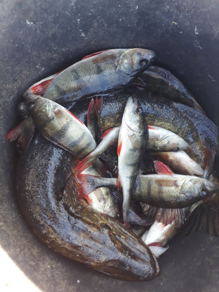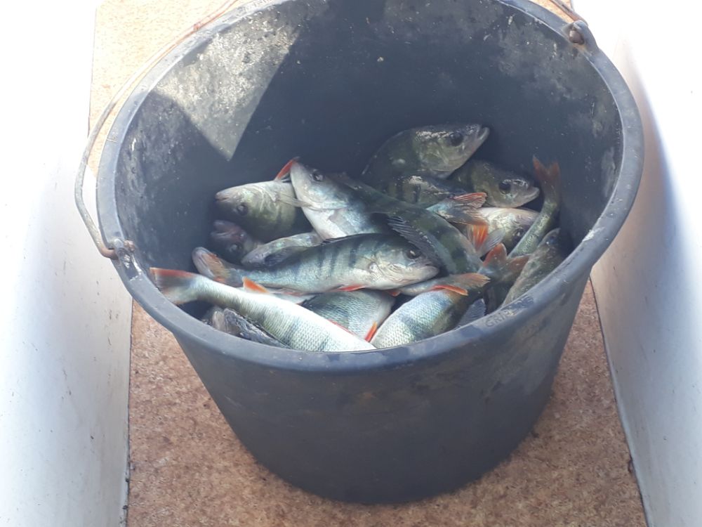 В эту субботу, с утра ветерок , на банки решил не ходить , поискать рыбу в озере , на первой точке , мимо , вторая тоже ни чего , а вот на третьей зацепился , за окуня , сначала на дольнем забросе только брал , сместился , поближе и понеслось , окунь вполне приличный , дуплеты так еле в лодку поднять , ну и окунь просто под лодку встал , с пол ведерка надергал , все ни как не остановится , просто опустил и достал , некоторые особи , даже за грузило цеплялись , окунь очень активный, смотал удочки в самый клев , рыбы уже просто за гланды , на хорошую коптилку.