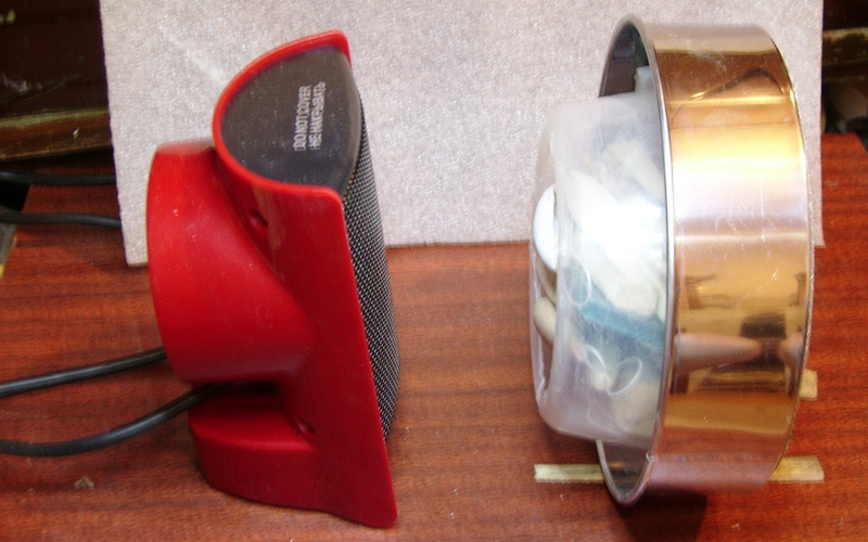 Поначалу использовал его как попало, быстренько слепил ему ёмкость из всякой всячины... Но затем всё же сделал к нему более подобающий аксессуар. До этого подсушивал заготовки над перевёрнутым абажуром настольной лампы. Результат устраивал, но по удобству использования тот вариант не шёл ни в какое сравнение с нынешним.