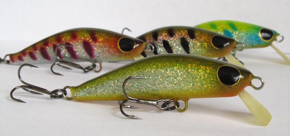 Что бы не дать теме застояться, поспешу со своими свежими приманками. Начал делать партию с целью освоить парчу. Хочу выразить благодарность Володе Стеклодуву за подробный видео урок по обклейке воблеров парчой. Пока работал пришёл к мнению, что обклеивать парчой следует по серебристому или золотистому лаку. Тогда покрытие получается более "плотным", как по грунтовке. Парча золотистая и серебристая. Некоторые закрашены флюриком. Финиш КАБ.