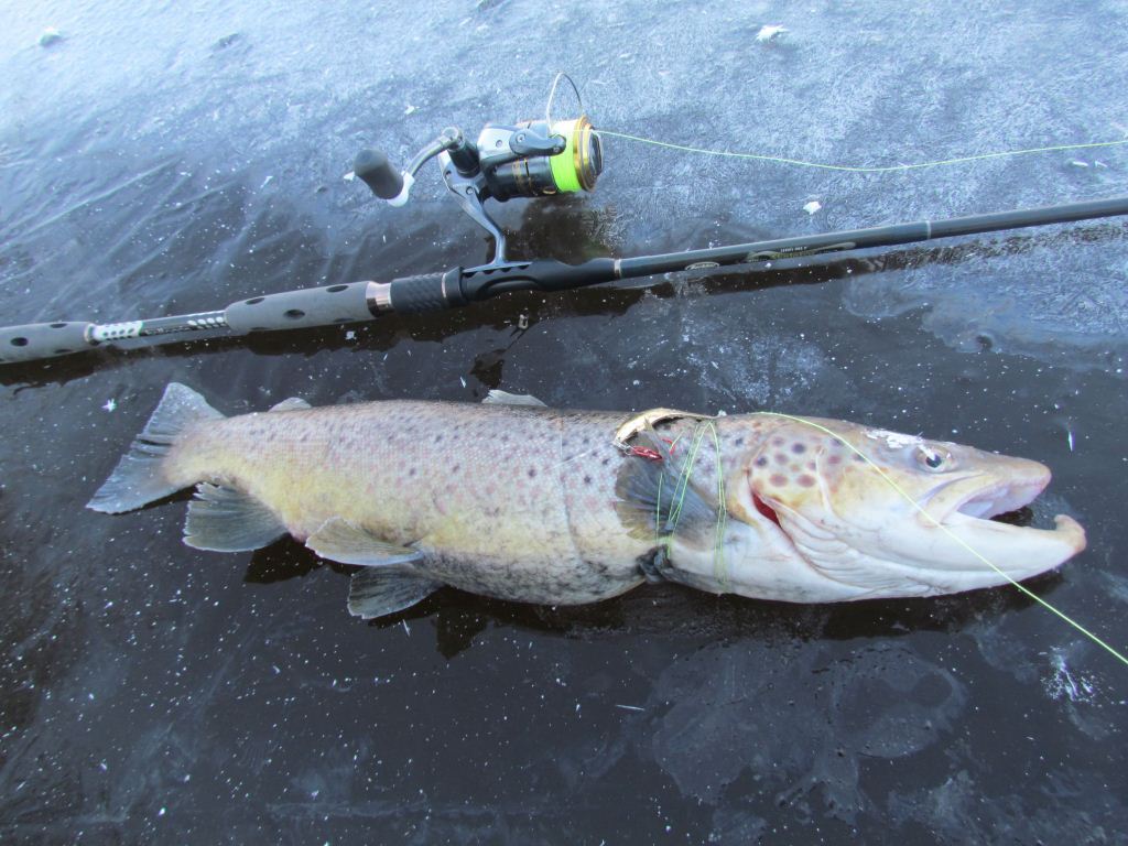 на неё,а ледок по краю совсем тонкий - рыба проламывает