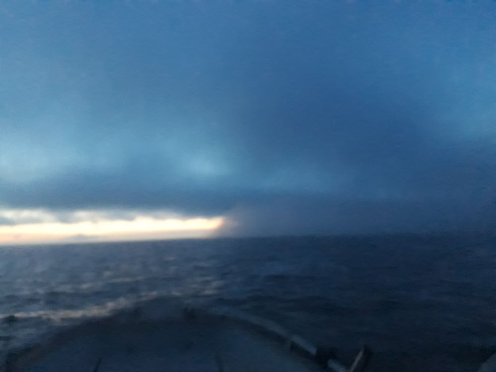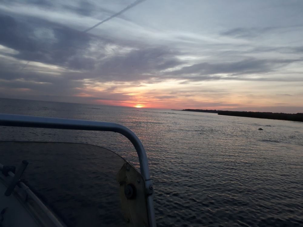 Оказалось еще и туман добовлял темноты и как то странно он держался , на берег не выходил и от берега на пару км и стоял плотной стеной , как вышел с тумана так вдоль стенки до места и шлепал.