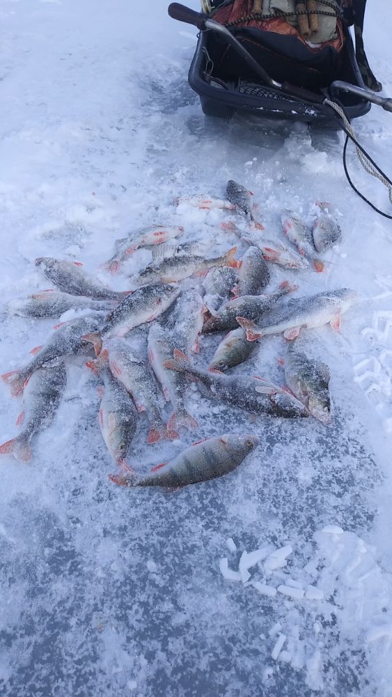 Особо писать то неочем, рыб клевал, без фанатизма правда, первый день как Саша писал ветер и позёмка, особо передвигаться не было желания, просидел практически на одной лунке, ведёрко наковырял мелочи, при этом так же клевать начало не сразу, а к часам 9:00 примерно. Воскресенье, клёв сразу с самого ранья, но искал покрупмей окуня, с лунки 1-2 нормальных дальше мелочь, особых бонусов не было грамм под 300 штук 6.