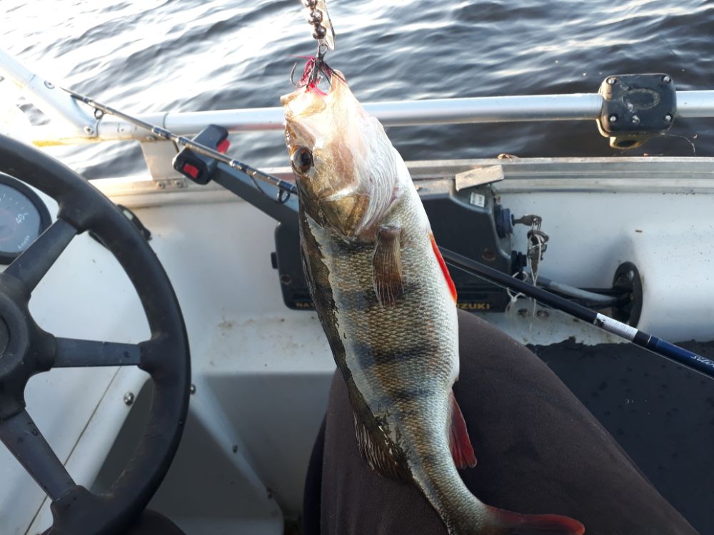 В эту субботу все наоборот , и ветер и волна и рыба капризничала , да она была , если в прошлом разе даже если промахивалась , на сдедущем забросе уже садилась , тут же сопровождает до лодки разварачивается и с концами , хоть обкидайся , также и поклевок много но не результативных , что по окуню , что по щуке .