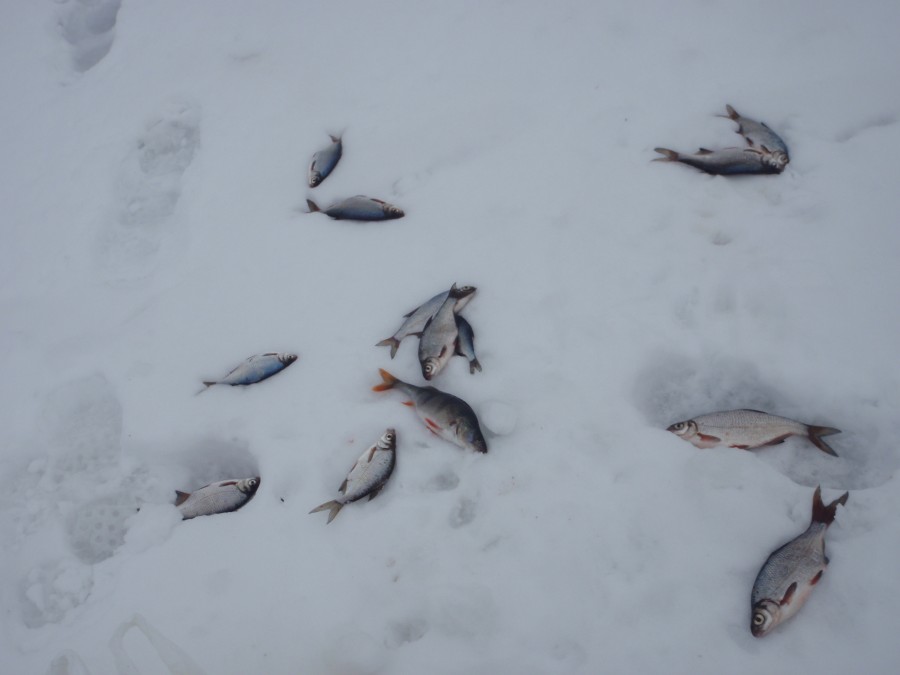 Такое зимой наблюдал,на льду сотни плотвиц оставлялось.