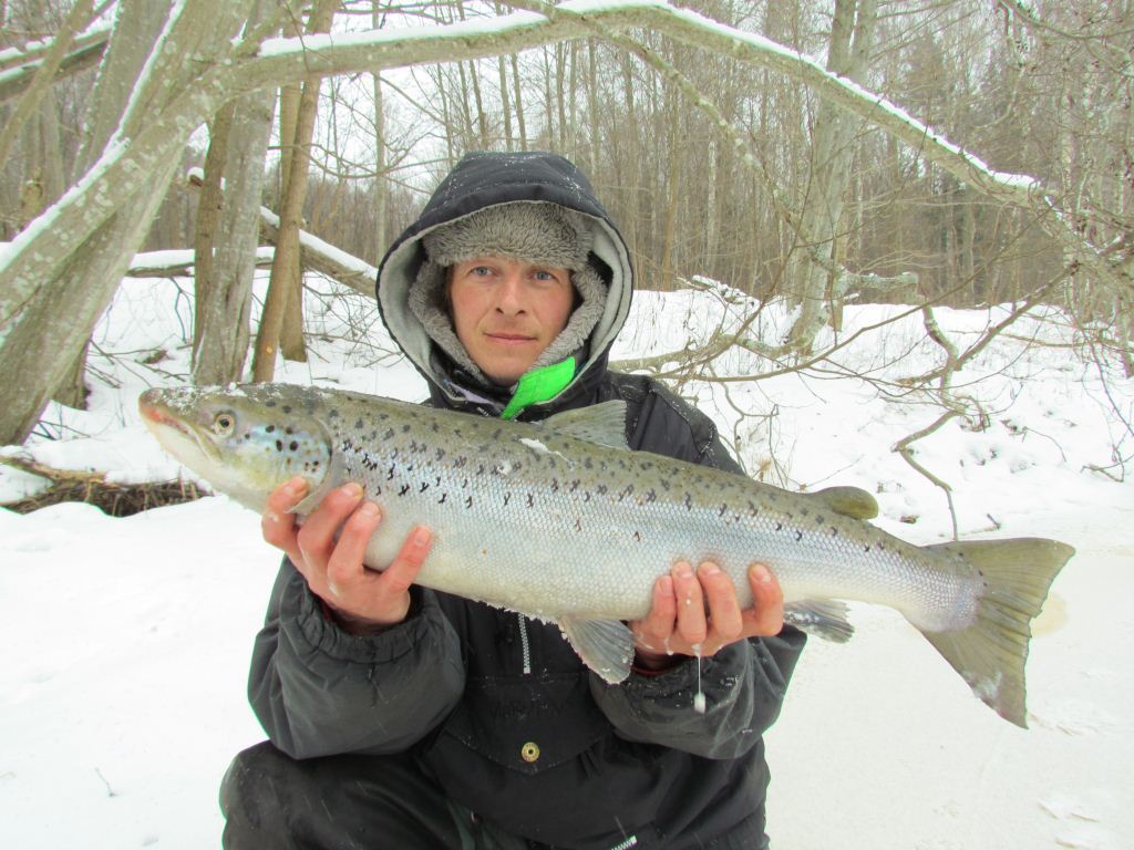 И вот в пятницу вечерком, экипаж из четырёх обезбашенных не торопясь выдвинулся в сторону города героя Лиепая. В уме подсчитав, что растояние до Лиепаи короче чем до Чуда, рыба крупная, затрат меньше а температура выше, мы ломанулись к морю. За окном проплывали заснеженные морозные пейзажи и под тынц, тынц, тынц рвавшийся из динамиков и разговоры про рыбаков и рыбок в перемешку с воспоминаниями мы таки доехали. Знакомый поселил нас в графской усадьбе образца восемнадцатого века с потолками усаженными лепниной и высотой метра под четыре с копейками. С камином в зале усеянным изразцами и зелёным рельефным кафелем. Каминчик оказался высотой под стать высоте залы. Плюс курительная комната, веранда с витражами, бильярдная и прочие изыски той бедняцкой жизни, кою вёл и в коей не отказывал себе бывший хозяин сего трёхэтажного зданьица с парком в придачу и примыканием к морскому побережью. Новые хозяева приумножили предествующую бедняцкую роскошь вкраплениями из нашей бедной повседневносити, как то, джакузи, кучей телевизоров, муз. центров, ковров , современной мебели и компьютеров с нотиками. Ну и ещё целой массой нужных и полезно - хитроумных, новомодных штучек, кои никоим образом не портили а скорее только дополняли старину, не нанося ей вреда. Поужинав с немалым колличеством крепкого, креплёного и слабо разбавленного чая, я понял, что у руля с утра буду сидеть я. У тро, завтрак, прогрев бибики и на точку ДЖИ! По прибытию заметил стайку снегирей коих не наблюдал уже ооочень давно. Снегири, это такие маленькие птички как синички, только побольше и снегири. У синичек грудки бело - жёлтые а у снегирей точно такие, только розовые. Ещё был замечен зимний хищник довольно крупных размеров, нарезающий круги в небе инденцифицировать название коего не представилось возможности в виду заполнивших мозг плескавихся мега окуней и предстоявшей в походе за ними преодолении полосы препядствий. Полоса заключалась в преодолении дыры в заборе бывшей военной части путём проползания под натюрморта ради натянутой колючей проволоки и трёхсотметрового маршброска галсами и перебежками.