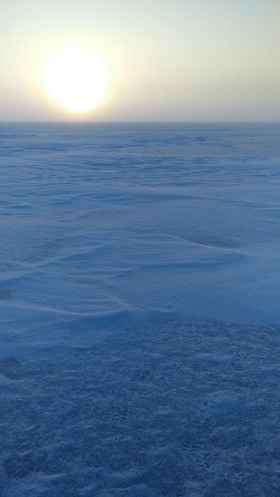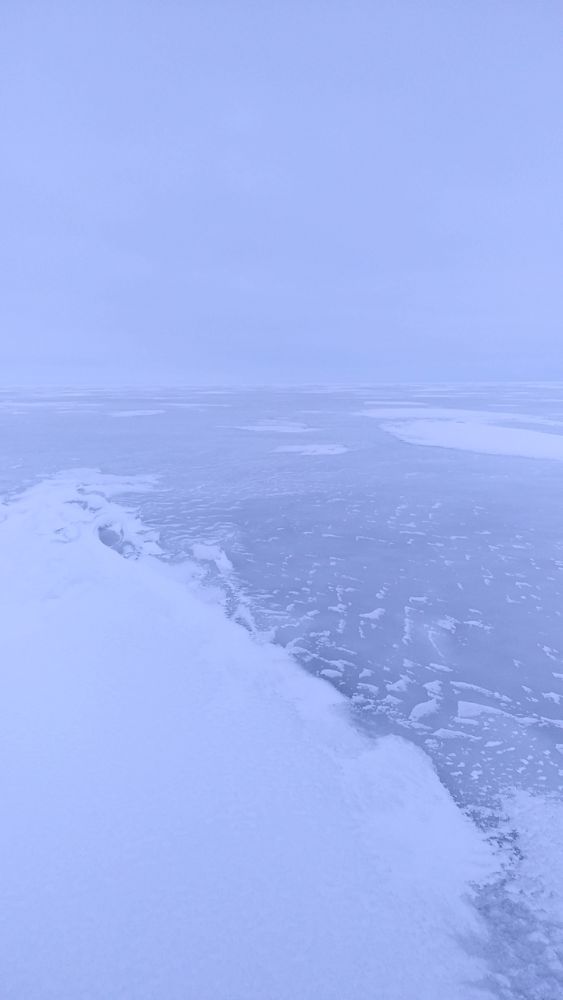 С утра небольшой морозец, ветерок, чуть-чуть осадков и отличный ход. На удивление, промёрзшие сугробы на льду сохранились, хотя и уменьшились в размерах.