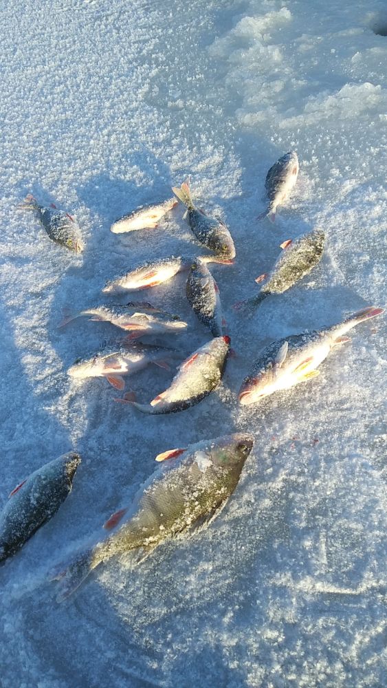 Были с Игорем в четверг по плотве, он 20,я 16кг. Рыбалка весёлая, увлекательная, рыбка красивая, уезжали всё клевала. Настроение на высоте, спасибо озеру. А до этого, печалька. Если опустить декабрь, то вообще, с нового года каак не попёрло. Четыре рыбалки на озере по 4кг.это вообще ни о чём. Переключился на водохрон, четыре рыбалки заподряд, ни одной рыбки домой. На последней было желание переломать удочки и утопить бур. От греха подальше рванул обратно в озеро и... все как и було. Опять насортировал, чуть за четвёрку. Ну и ну, получалось 9 рыбалок подряд, и ни одной, чтоб понравилось. Такого и не припомню. Однако бывает. Всем удачи и не хворать.