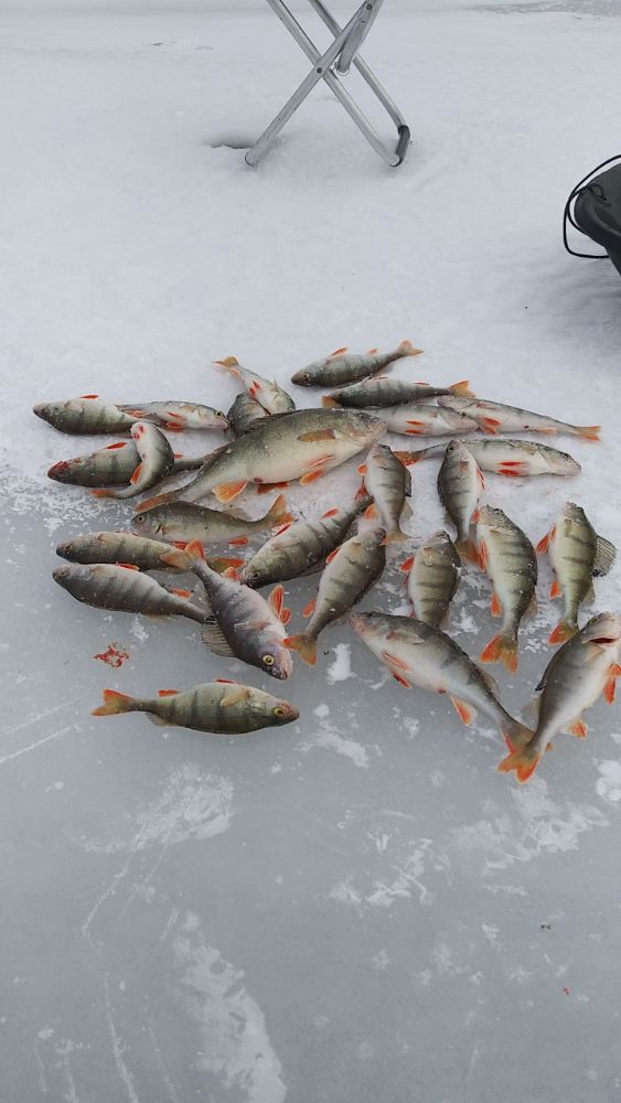 Ну и мне удалось открыть Чудо. Половили. Нормально так. В субботу с утра вроде -19, но это же не 25)). Уехали в даль дальнюю. С четвёртой лунки сел, и так весь день на ней и просидел. Окунь подвергался жёсткой фильтрации ибо мелочи предостаточно. Саня кружил по периметру в поисках, но результат везде одинаков. На отбирал штук 50 на коптилку и хорошо. Погода в кайф. Ветра не было, даже пальцы не мёрзли. Классно время прошло, но быстро очень.