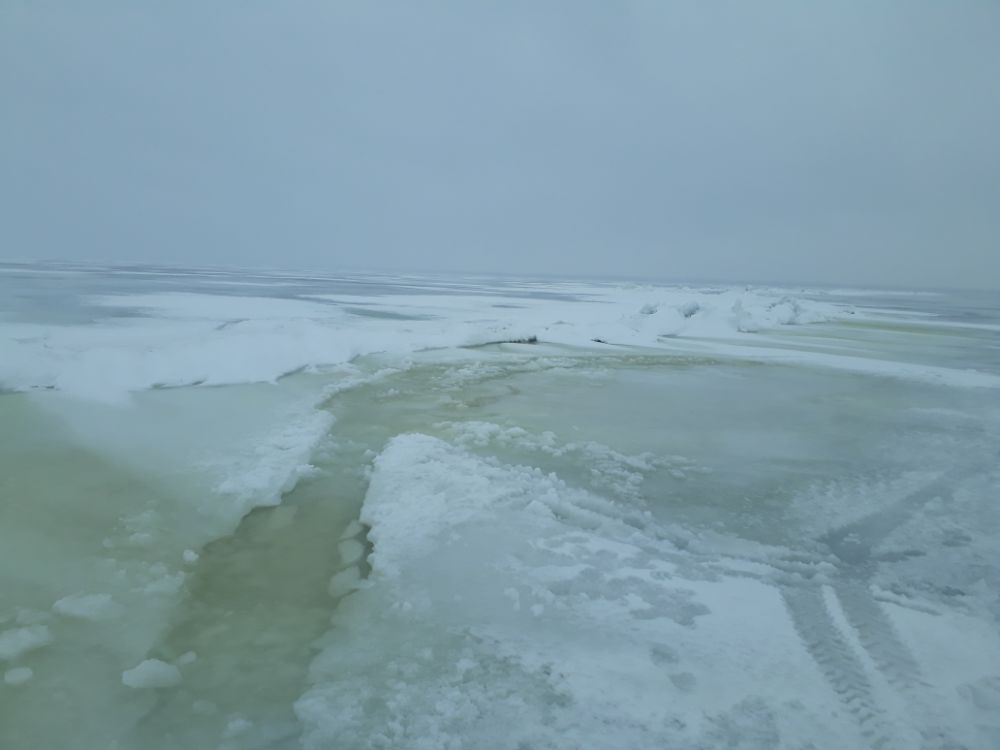 Давно такого состояния льда ,для передвижения на снежике не видел .