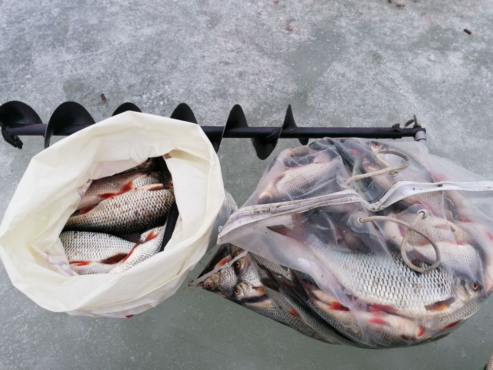 Думал больше не поеду, однако не удержался от предложения друга закрыть сезон. Хотя лёд ещё хорош, но хватит. Деревня на год сушёной рыбкой обеспечена.. Вчера опять хорошо, 23кг взял. На том спасибо озеру и водяному. Всем удачи и не хворать