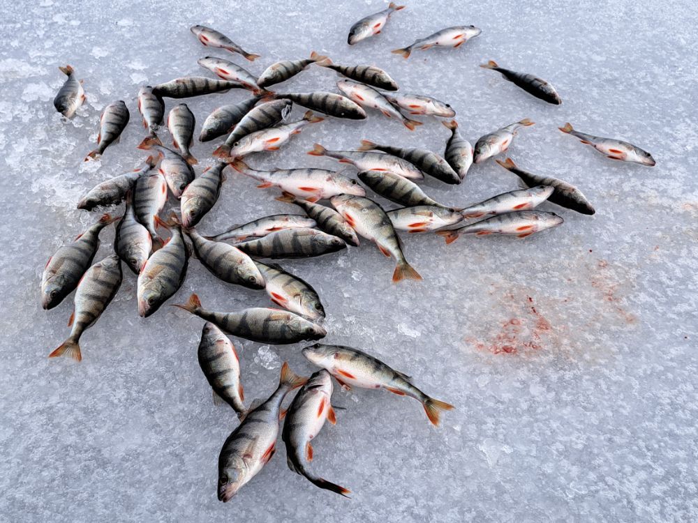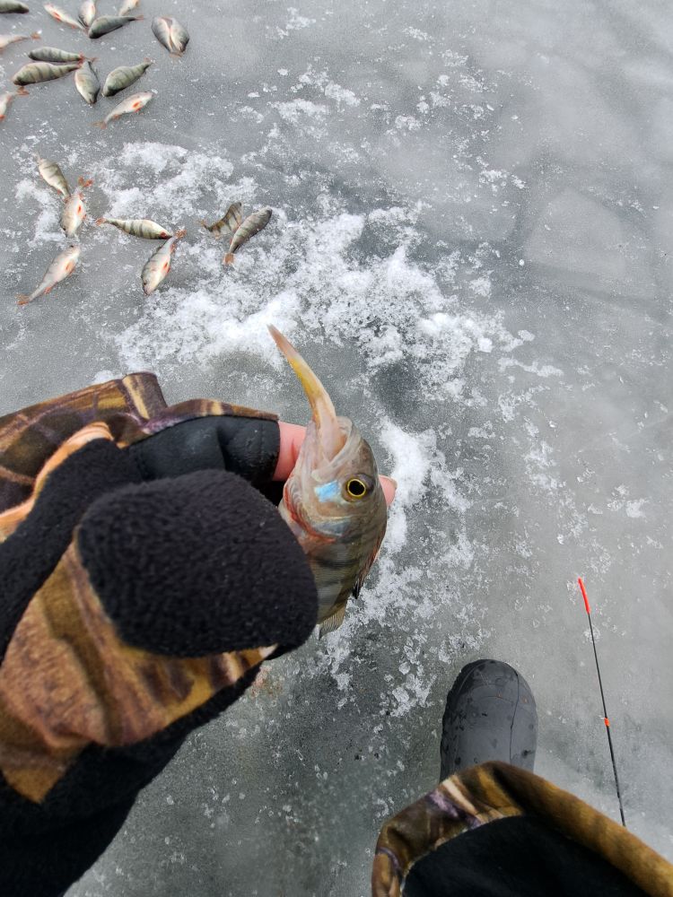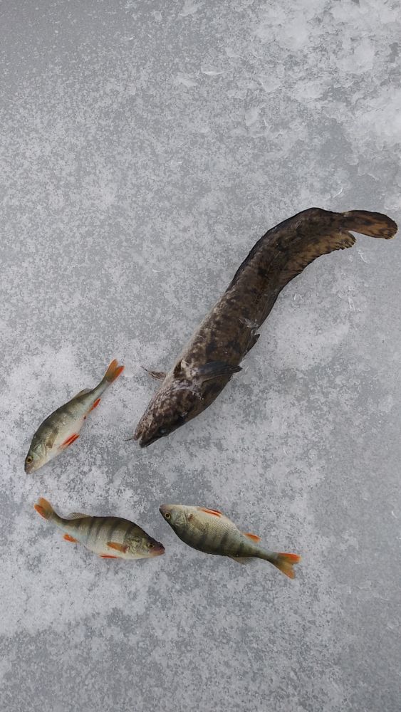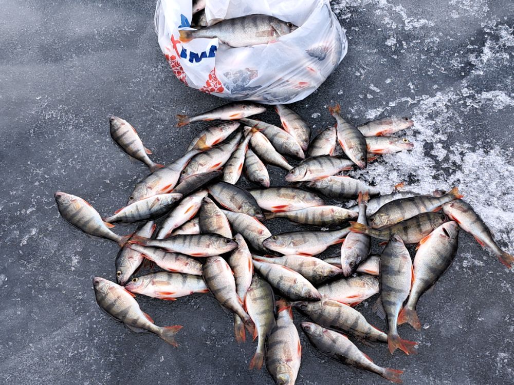 В субботу порыбачили компанией. Опять просидел на одной лунке. А фигли бегать, если клюёт. Погранцы на подушке подходили. Разрешение на выход проверили. Затем инспекция была, то же проверили. Кстати штраф за нахождение без регистрации 800 евро. Окунь как обычно, мелочи много, пришлось фильтровать более жёстко. )) Время пролетело быстро. Но замечательно.