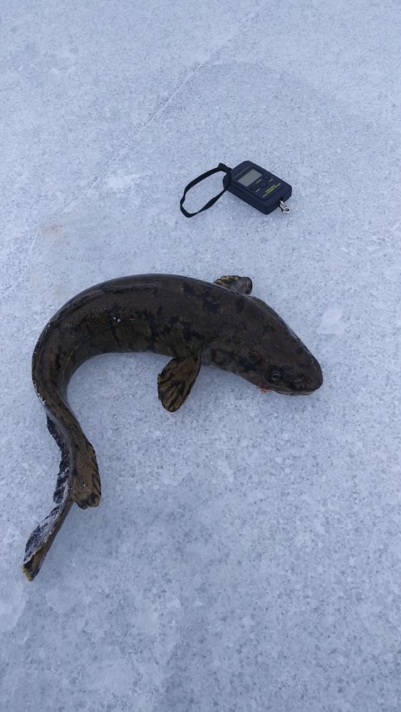 Хочу до 11.00. побегать с железкой на налима. Окушки клюют, налимы нет. Наконец, около 10.00. прицепился налимчик, но уже около лунки обидный сход... Борюсь дальше, минут через 10 снова поклёвка небольшого налима и опять сход. Минут через 10, наконец-то вытаскиваю налимчика килошку.