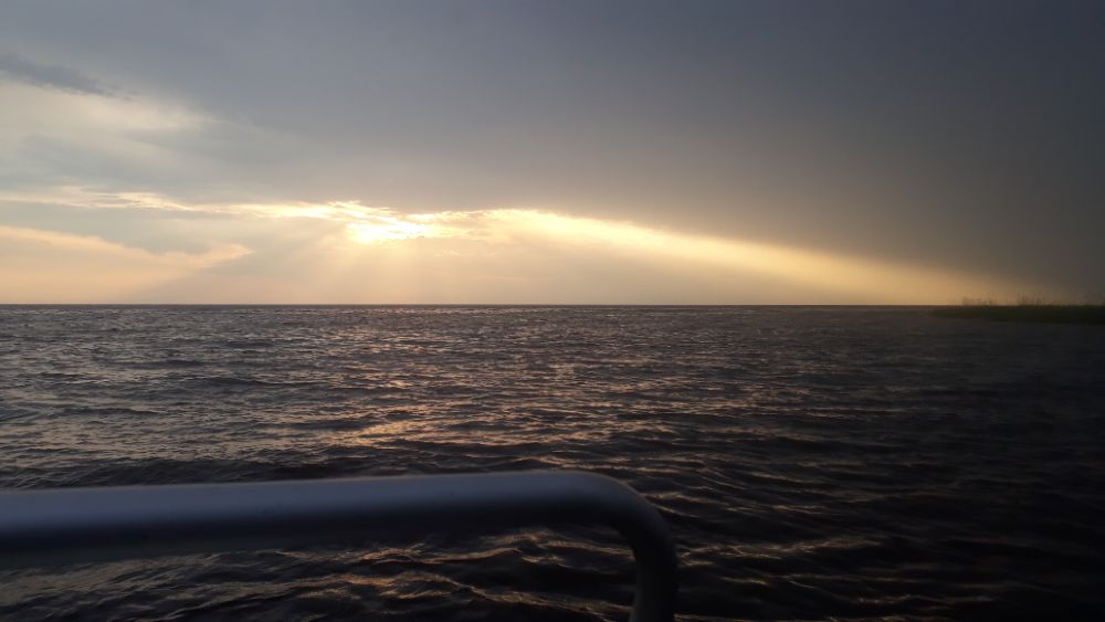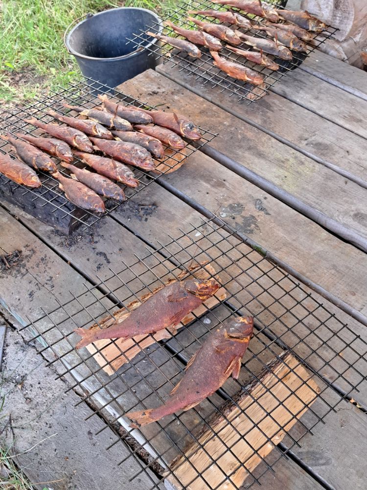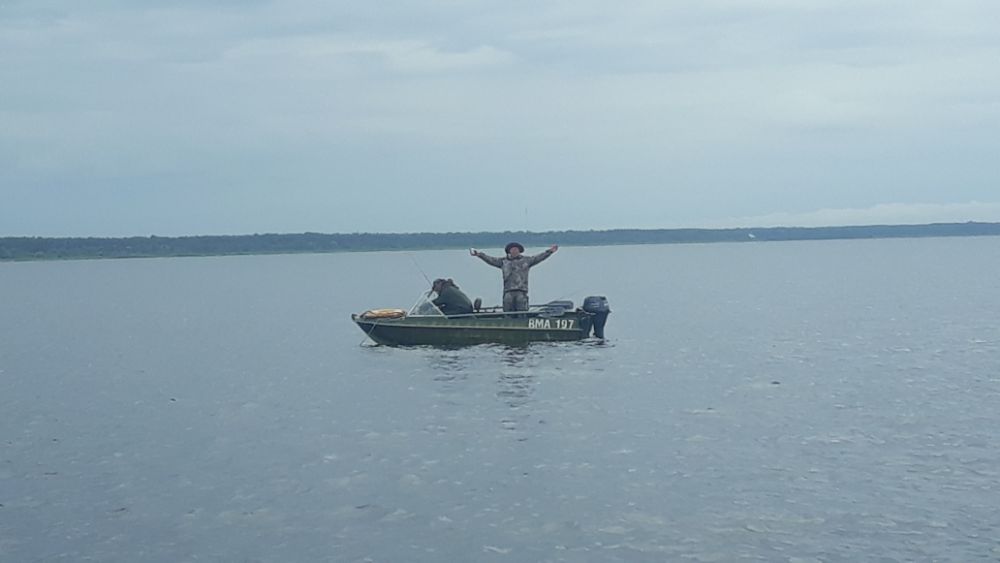 За три выходных дня, выбрались разок, в субботу. В остальные дни, ветер с утра с озера, волну аж в реку гонит. В понедельник вышли на берег с утра, посмотрели на озеро, рукой махнули и спать дальше ушли.
