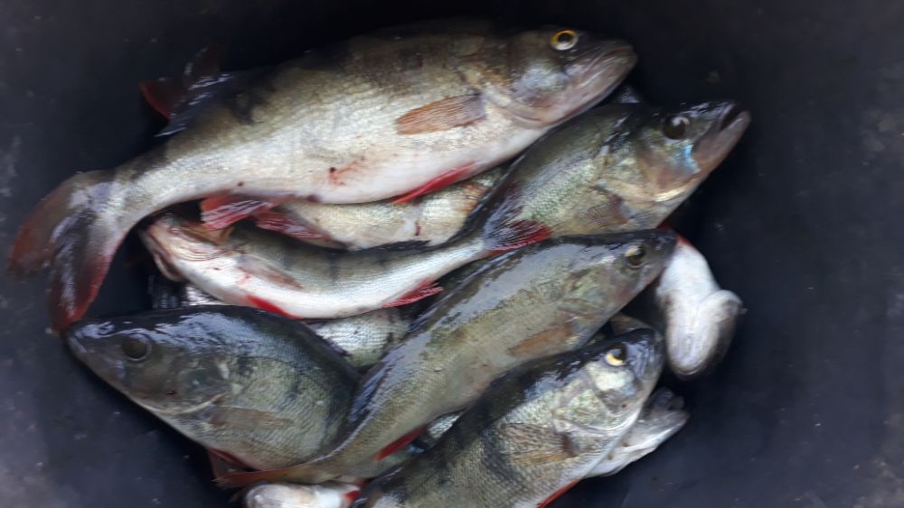 Ну а всубботу классно, ветерок приемлемый,для окуня хороший. Рыбка сразу проклюнулась, а так как были втроём, то ведёрко быстро заполнилось. Размер радует. В 7 00 уже двинули к дому. И рыбки половили, и весь день свободен))