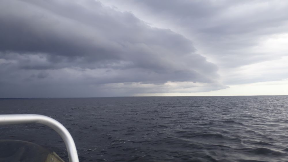 Вышли в начале пятого , ветер не такой сильный , но на горизонте тучи дождевые , на дальнюю точку не пошли , но и до ближней не подучилось , туча быстро нам окружала , уже в дождь вернулись в реку .