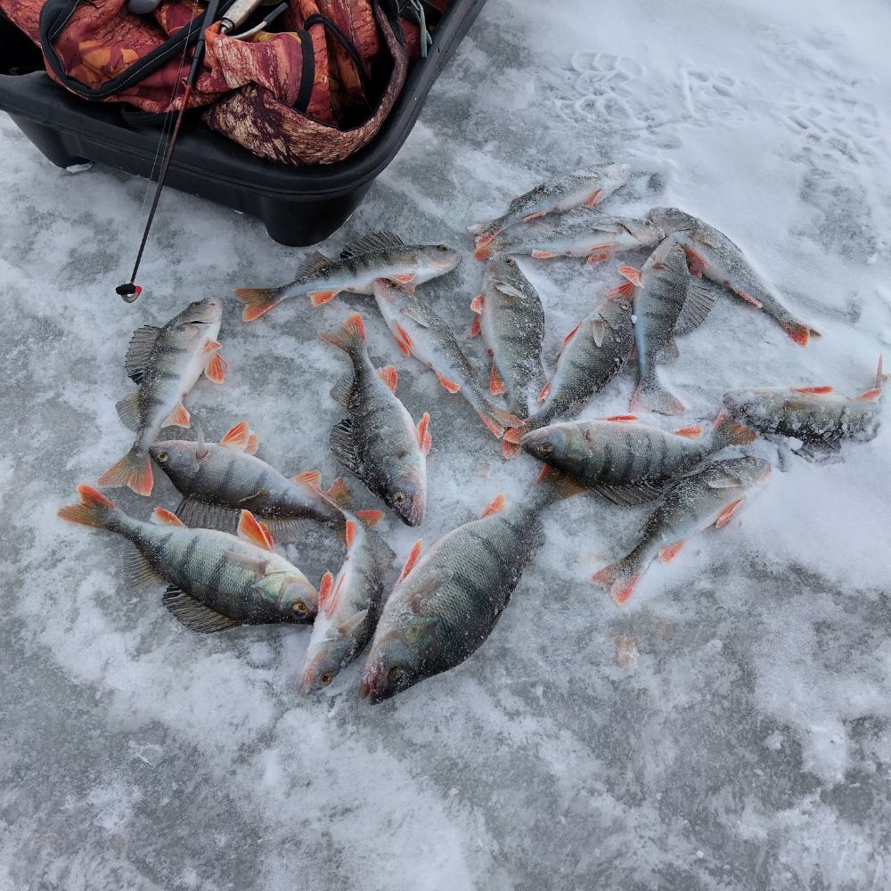 Несмотря на то что нагулял по озеру больше десятка км и насверлил черте сколько лунок, стайного окуня найти не удалось, средняя уловистая лунка это пара окушков. Мелочи до ста грамм в этот раз почти не было, в основном 120-200 грамм и все трудовые.